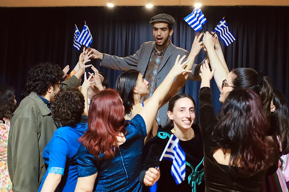Μάρτιος του 2021. Μία φιλήσυχη ομάδα πολιτών βρίσκεται, παρά τον κίνδυνο του κορονοϊού, σε μια αίθουσα όπου θα γιορταστούν, όπως έχει ανακοινωθεί, τα 200 χρόνια από την επανάσταση του 21 με δόξες και τιμές. Η εκδήλωση αναβάλλεται και αντί να φύγουν, τιμούν εκείνοι την Ελλάδα με αναφορές στο παρελθόν της, ιστορικές αλήθειες και ανακρίβειες, ευχές, παιχνίδια και μεγάλες δόσεις χιούμορ. Τελικά ποιοι είναι οι σύγχρονοι Έλληνες; Πόσο διαφορετικοί είμαστε και γιατί; Μπορούμε να ζούμε αρμονικά, να κατευνάσουμε τα πνεύματα για να “πάμε μπροστά”;
